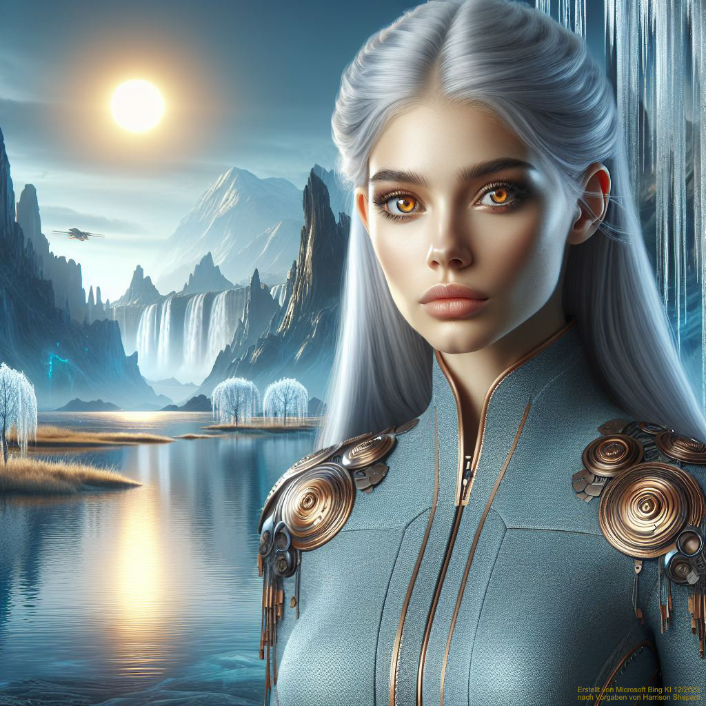 Ihre silberweißen Haare trug sie zu einem Zopf zusammengebunden. Vorne waren sie kurz geschnitten und bis einen Finger breit über den Augenbrauen in die Stirn gekämmt.