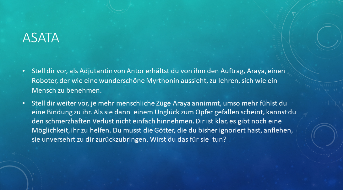 Antors Adjutantin und Mentorin seiner Robothaushälterin Araya.